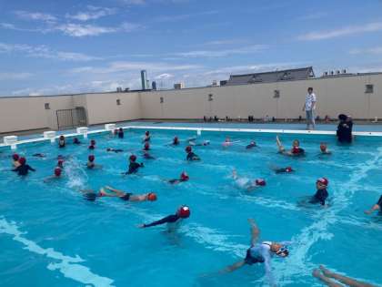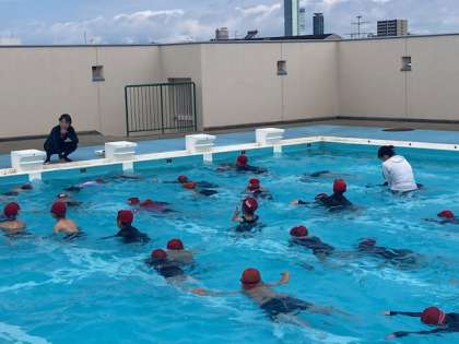 晴天の中、伏し浮きやバタ足の学習をしました。