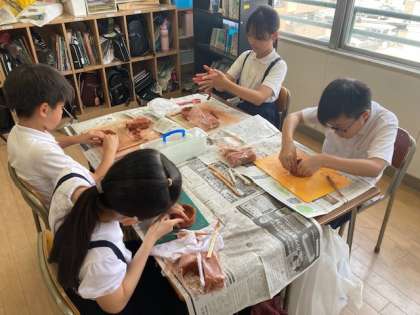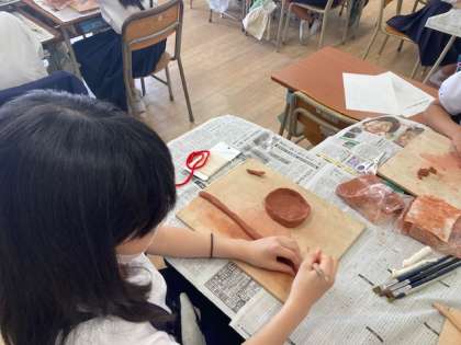 6年生が図工の時間に紐状にした粘土を重ねながら縄文土器を作っています!社会科で学習した縄文時代のくらしを想起させながら「自分だけの縄文土器」を作ります!どんな土器に仕上がるのか楽しみです(^^)