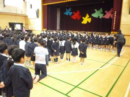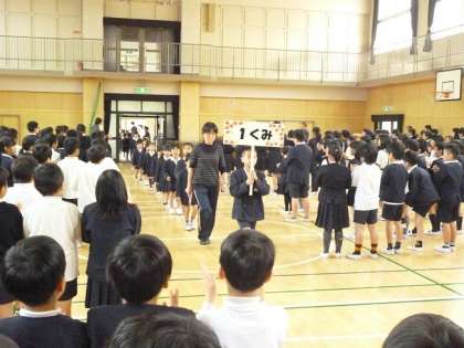 4月14日木曜日。新平野西小学校の2年生から6年生と新1年生の対面の日です。