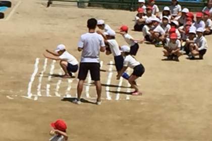 3年生がソフトボール投げと立ち幅跳びをしているようすをご覧ください。