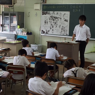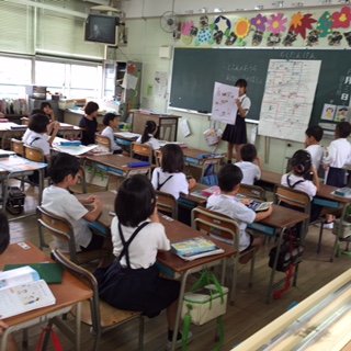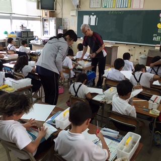 2年1組は図工の色々Tシャツ。カラフルな自分だけのTシャツをデザインしました。