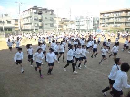 冬にむけての体力づくりとして、かけ足タイムに取り組んでいます。20分休憩時に全校児童がそれぞれ、低・中・高学年コース別に走っています。寒さに負けずに頑張って走りましょう!