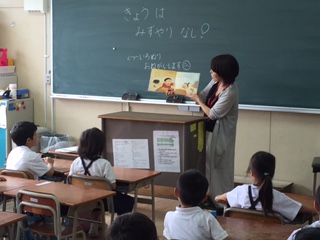 6月8日水曜日。今日から朝の読書の時間、読書ボランティアの方が読み聞かせをしてくださいます。今日は、1年生に読み聞かせをしていただきました。