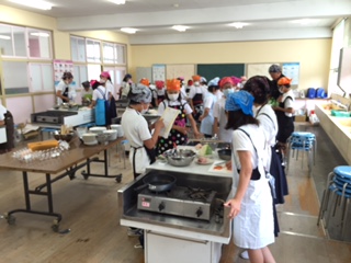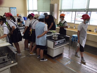 今日(6月15日)。1組が1・2時間目、2組が3・4時間目に調理実習を行いました。テーマは『朝食を作ろう』。子どもたちは手早く取り組み、おいしそうな『オムレツ、野菜炒め、ホウレンソウのおひたし』の朝食を作りました。