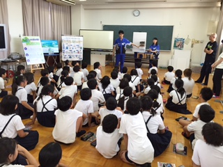 6月15日。4年生が、環境の学習を行いました。三ツ矢サイダーの方にお越しいただき、水とゴミの再生をテーマとした環境学習でした。