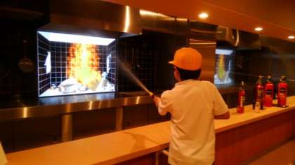初期消火コーナーでは実際に水消火器を使って、消火の訓練ができます。
