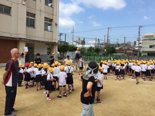 ドラえもんの色は「青?」など1・2年生でも答えられるようなクイズを出題してくれました。みんな楽しそうに活動していました。