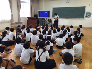 7月11日。今日は本年度最初のサラムの集いがありました。4年生は林京美ソンセンニムにハングルを教えていただきました。