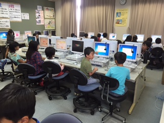 パソコン室開放。この日は6年生が優先でした。パソコンで調べたりお絵かきをしたり思い思いに活動をしています。