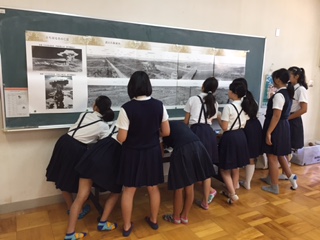 6年生は修学旅行に向けて、広島・長崎について、原子爆弾について、学習をしました。また、戦争当時に書かれた文書を貸していただき、そこに記された文字からも平和について学びました。