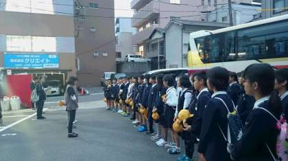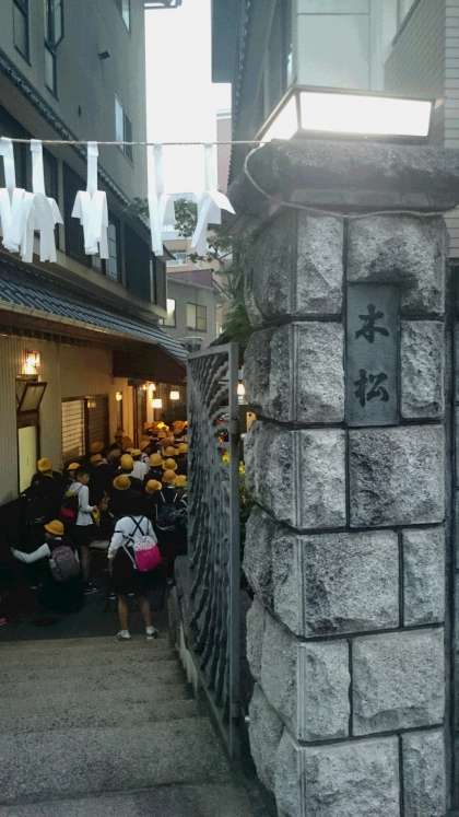 無事旅館に着きました。開舎式を済ませ、これから各部屋に入って避難訓練をし、夕食、となります。
