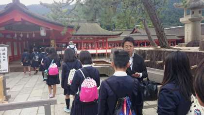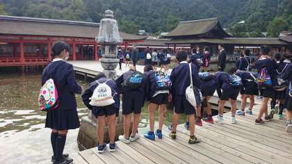 宮島では、クラス写真を撮ったり厳島神社を見学しました。