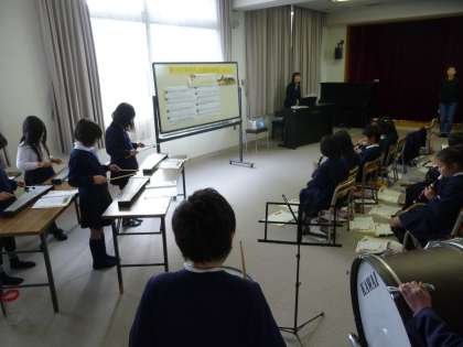 平野区の音楽部の研究授業が本校で行われました。題材名「音の重なりをかんじとろう」で子どもたちは合奏を工夫することができました。