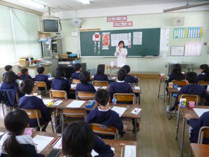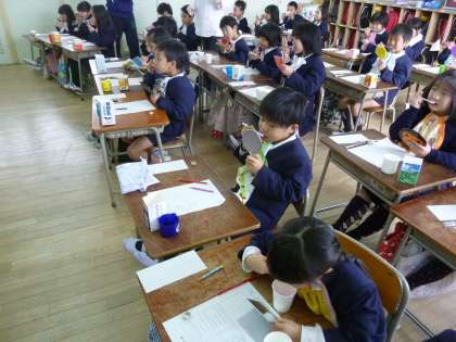 歯科衛生士さんの指導のもと、歯みがきの大切さを学びました。普段しっかり磨いているつもりでも、歯垢はついていることをテスターで確かめ、正しい磨き方を練習しました。