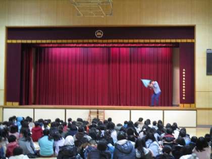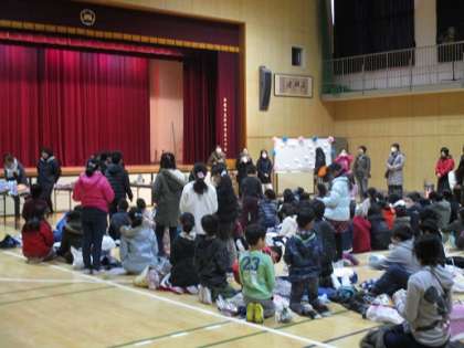 新平野西地域活動協議会青年部子ども会主催「お楽しみ会」が楽しく行われました。松永さんのパントマイムを楽しんだ後は、お待ちかねのビンゴゲーム大会。大歓声のもと、思い思いの賞品をもらい、満足そうでした。