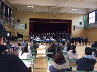 6年生はこれまでの6年間を振り返っての呼びかけと、自分の夢を発表しました。また、運動会にも流したゆずの「栄光の架け橋」を合奏と合唱で披露しました。