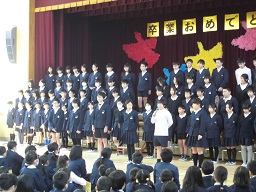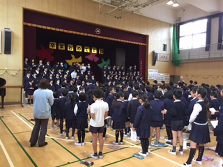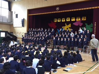 ゆずの「栄光の架け橋」の演奏がありました。また、6年生から、新平野西小学校に残る1年生から5年生までにメッセージが届けられました。