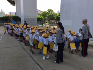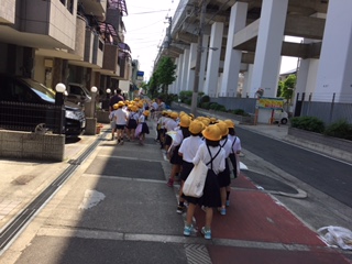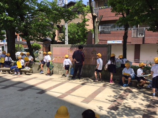 5月11日。今日は、2年生が校区探検にでかけました。今日は、校区のうちの北側、背戸口方面を探検しました。