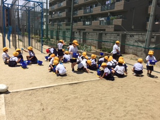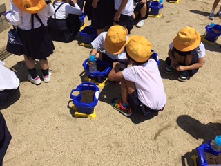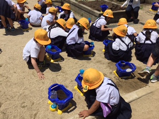 5月15日。お天気にめぐまれた今日。1年生が生活科の学習であさがおのたねまきをしました。