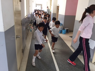 その後、「おかしも(おさない・かけない・しゃべらない・もどらない)」のルールを守って、運動場に避難しました。