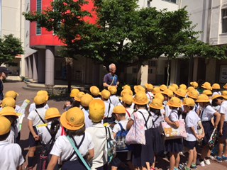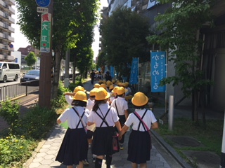 5月11日には背戸口方面へ校区探検をしましたが、今日(22日)は平野西方面に出かけました。