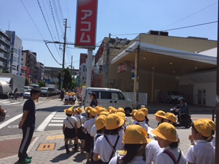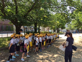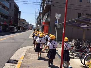 新平野西小学校の校区には平野中学校、摂陽中学校、東住吉高等学校とたくさんの学校があります。行ったことのあるお店、病院、住んでいる所など、地図に書き込みながら探検しました。