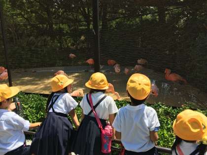 動物園に入り、カバ舎、シロクマ舎、フラミンゴなどいろいろな動物を観察しました。