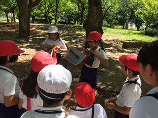 今日(6月6日)は、しらさぎ公園で縦割り班でのオリエンテーリングをしています。