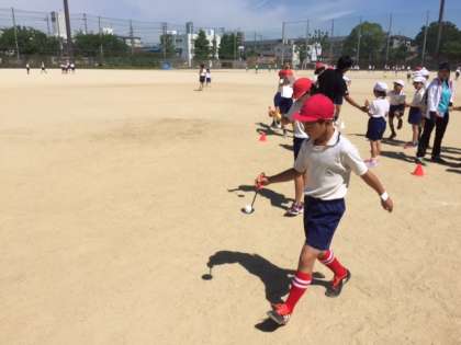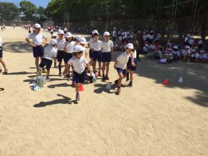 リレーのコーナーではおたまリレーとけんけんのリレーをしました。