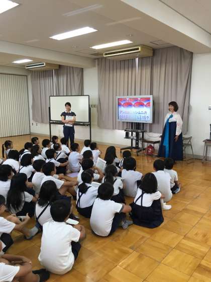 4年生は韓国の文字「ハングル」について学びました。ハングルにとても興味が持てたようでした。