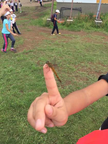 山頂にはトンボがたくさんとんでいて、みんな「トンボ止まれ〜!」と言いながら、指を出して
