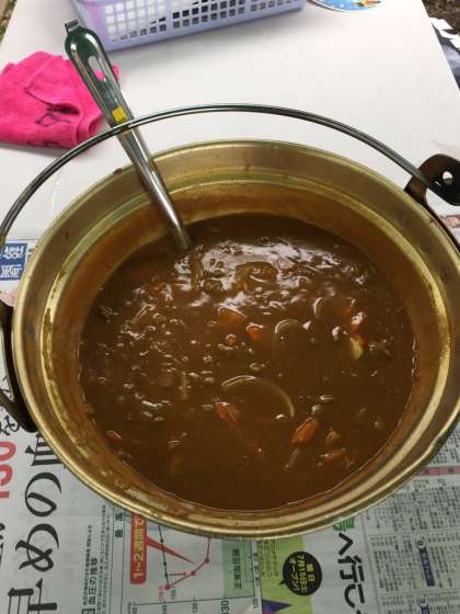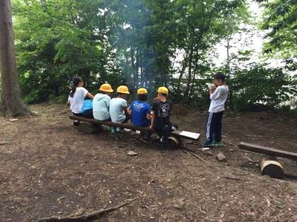 野菜を切ったり、薪に火をつけたり班で協力してカレーを作りました。