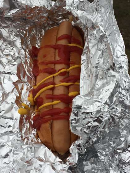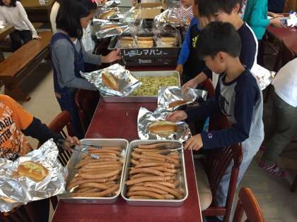 キャベツとウインナーを上手にはさんで、美味しいカートンドッグができました。