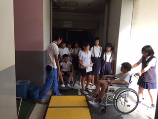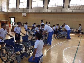 6時間目は介助体験です。段差を超える体験や車いすを持ち上げる体験などにも取り組みました。