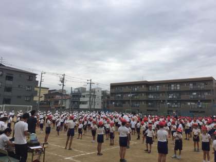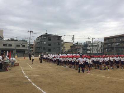 今日(9月22日)の一時間目、1回目の運動会総合練習をしました。入場行進、開会式のようす、大玉運びの方法などを練習しました。