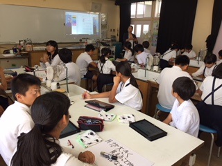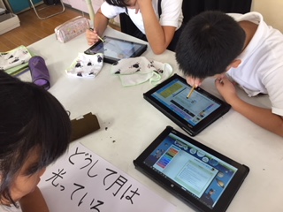 6年生は理科の「月と太陽」の授業で児童が資料を作って、それをもとに発表をする授業が実施されました。
