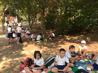 10月11日、良い天気にめぐまれて4年生は錦織公園へ遠足に出かけました。