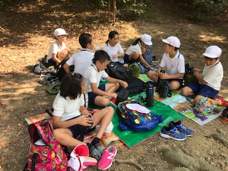 午前中は班別でのオリエンテーリングです。全部の班が無事ゴールに戻り、これから昼食です。様子をご覧ください。