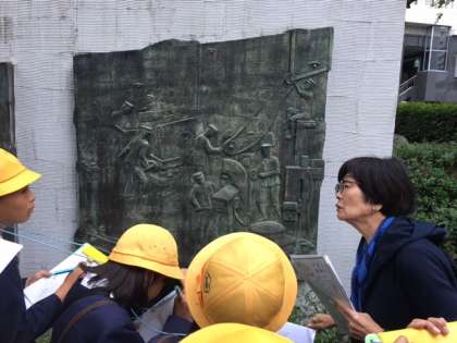 ボランティアガイドの方と碑めぐりのようすです。