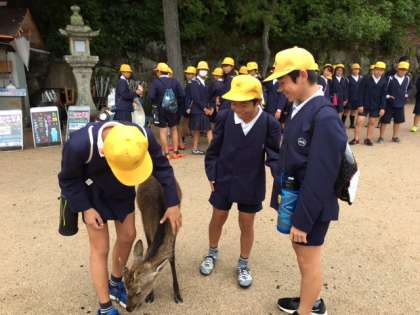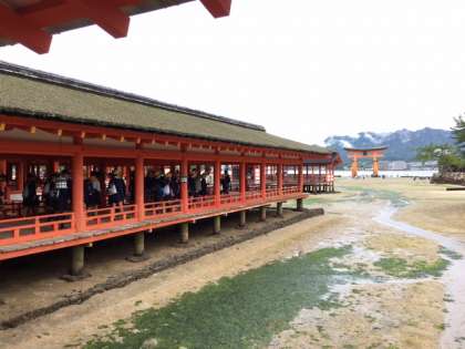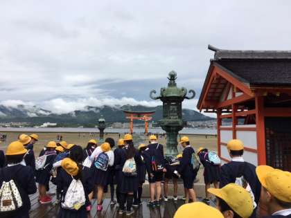 鳥居の前で写真を撮り、厳島神社周辺を散策しました。
