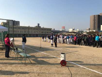 当日は雲一つない快晴の下、グラウンドに全選手が集合して開会式が行われました。