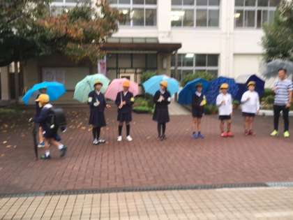 今週は、4年2組があいさつ運動に取り組んでいます。