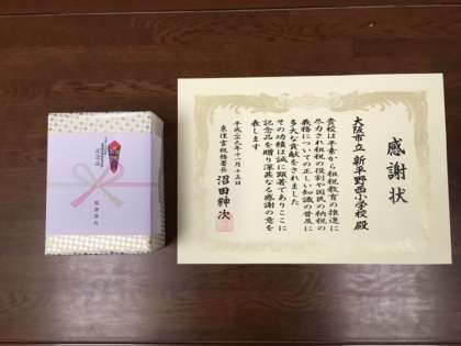 東住吉税務署から、租税教育についての感謝状をいただきました。