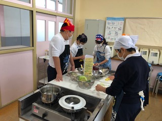 6年1組が調理実習に取り組みました。