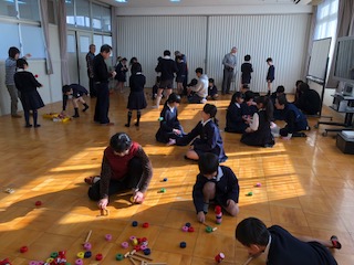 多目的室では地域の方が、昔遊びを教えてくださっています。