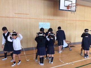 今日は6年1組と1年1組が交流しました。そのようすをご覧いただきながら、それぞれのコーナーで体験できる遊び、楽器、衣装についてお知らせします。