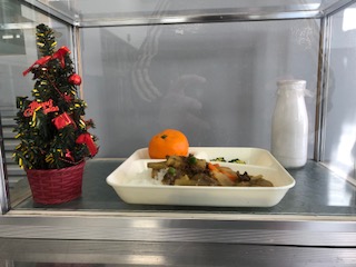 今日の献立は冬野菜のカレーライス、ブロッコリーのサラダ、みかんです。給食調理員さんに伺うと、みかんは子どもたちに出す前に3回も水洗いされたとのこと。冬場のこの時期に水仕事は本当に大変です。いつもありがとうございます。