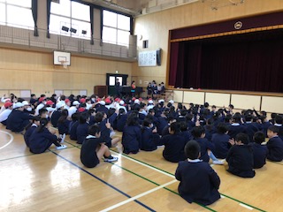 今朝(1月18日)の集会は、先生の声をあてる声当て集会でした。