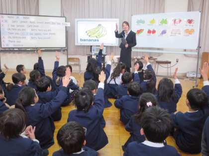 昨日(31日水)は、2年生が英語「果物の名前を言おう」を、外部講師先生の参観のもとで、学習しました。