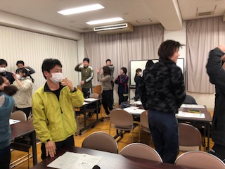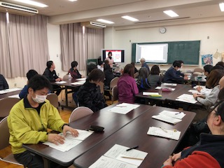 今日(2月5日)の放課後、平野中校下の小学校2校の先生が集まり、低学年からの英語学習ではどのような指導をすればよいのかを学ぶ研修会がありました。様子をご覧ください。
